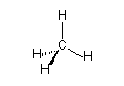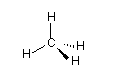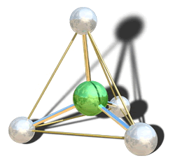 Una de las aplicaciones del método VSEPR permitió describir la distribución espacial de los cuatro enlaces alrededor de un átomo de carbono tetravalente. Efectivamente, este átomo posee una estructura de tipo AX4: los cuatro enlaces se reparten entre los cuatro vértices de un tetraedro en el centro del cual se ubica el carbono. | ![]() |