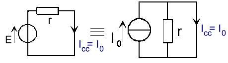 cuando los bornes del generador de Thévenin están en corto circuito, debe descargar una corriente cuya intensidad tiene el mismo valor que la intensidad[3] máxima del generador de Norton.