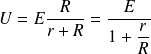 Elegimos el modelo de Thévenin para representar el generador. El montaje puede ser considerado como un generador de tensión[4] ideal de f.e.m. E alimentando un divisor de tensión[5] formado de dos dipolos[6] en serie de resistencias r y R. De lo cual: