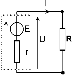 Sea un generador[1] de f.e.m. E y de resistencia[2] interna r, cargada por una resistencia R. Busquemos en cuáles condiciones la tensión[3] U en los bornes del generador depende lo menos posible de R.