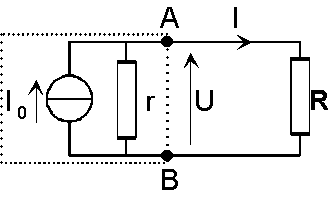 Sea un generador[1] de f.e.m. E y de resistencia[2] interna r, cargado por una resistencia R. Busquemos en cuáles condiciones la corriente descargada por el generador depende lo menos posible de R.