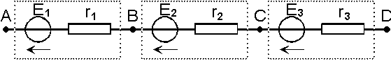 Si conectamos A y D mediante un cortocircuito, los tres dipolos está recorridos por la misma corriente de intensidad