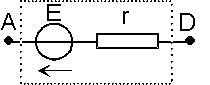 Si uno de los generadores hubiese estado conectado en el sentido contrario (decimos en oposición), la diferencia de potencial[3] al vacío entre sus bornes hubiese sido igual al contrario de su f.e.m